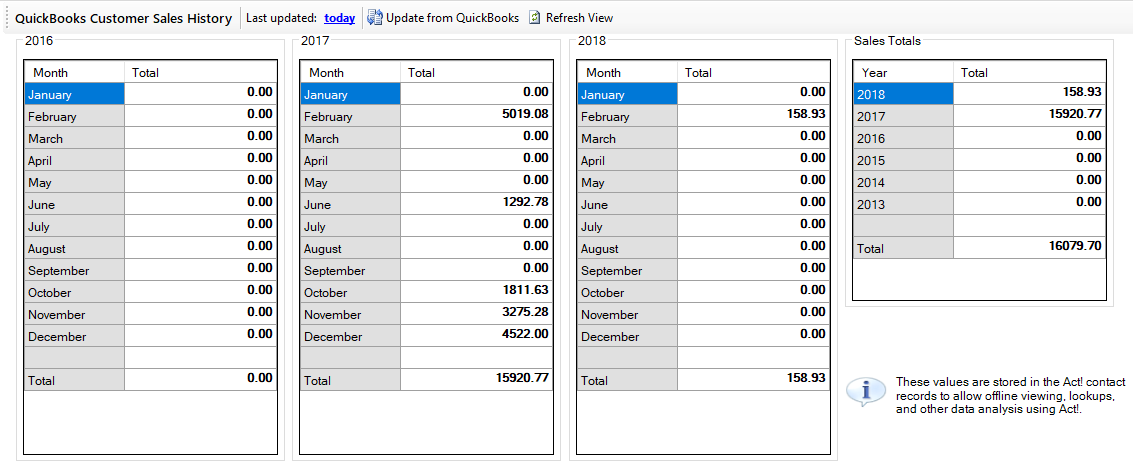 Up-to-the-minute - accounting history you view through an Xact Live Link in Act! is current - no overnight processing delays.
